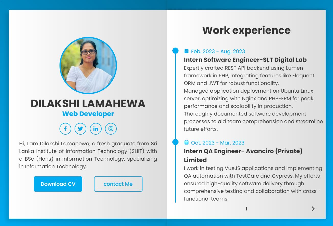 Hi, I am Dilakshi Lamahewa, a fresh graduate from Sri Lanka Institute of Information Technology (SLIIT) with a BSc (Hons) in Information Technology, specializing in Information Technology.